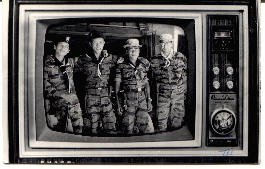 SFC Lopez with Vietnamese Soldiers. "Tiger Uniforms" and colored scarfs indicate Special Forces/Mike Force.